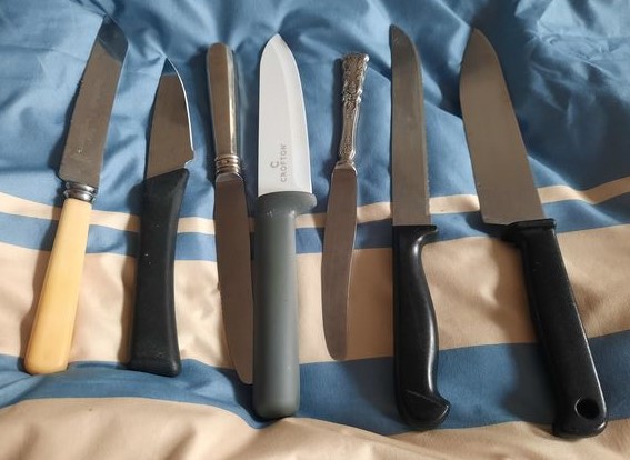Wszedłem do światowej sławy muzeum „Uffizi” z nożem w skarpetce buta. Ale nóż uwierał i w pierwszej lepszej toalecie muzeum wyjąłem go z buta! Bardzo mu się obrazy na płótnie w solidnych ramach z perspektywy torebki podobały! W kolejnych salach nikt mnie przecież na ich progach nie kontrolował detektorem. A uratowany nożyk śpi w torebce!