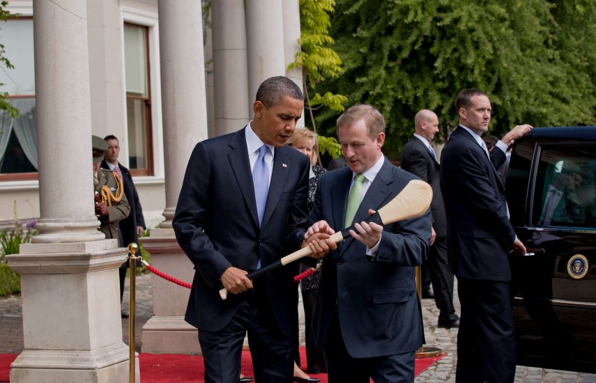 Od lewej: Barack Obama i Enda Kenny. Nawiązanie pozytywnych, prywatnych relacji z przywódcami innych państw sprzyja późniejszemu pozyskaniu sprzymierzeńców i osiąganiu sukcesów na arenie międzynarodowej”. (Plansza K. Budowanie pozytywnych stosunków międzynarodowych. Rycina 3.1).