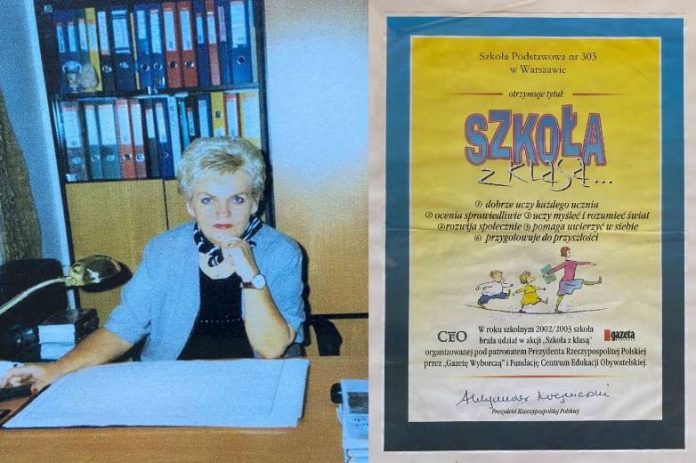 Największe sukcesy odniosła jednak w Szkole Podstawowej 303 (przy ulicy Koncertowej 8, na warszawskim URSYNOWIE), która uzyskała zaszczytny tytuł  „SZKOŁY Z KLASĄ” w roku 2003.