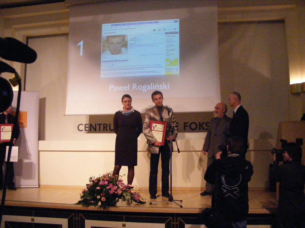 Paweł Rogaliński, dziennikarz obywatelski 2009 rokuDziś na Gali Finałowej w Warszawie otrzymałem nagrodę i tytuł Dziennikarza Obywatelskiego 2009 Roku. Organizatorami konkursu byli: Wiadomości24, Orange, TVP.pl, Polskie Radio Trójka, Press, Polska The Times, Wirtualna Polska, Gadu-Gadu, Polska, NaszeMiasto.pl. Od siebie chciałbym podziękować wszystkim moim czytelnikom za niezwykle dużą liczbę głosów. To dla mnie wielkie zaskoczenie i zaszczyt, że mogłem ponownie wejść na podium i odebrać tak prestiżową nagrodę. Tuż po Gali udzieliłem kilku wywiadów, także informacje o niej można znaleźć w wielu mediach.