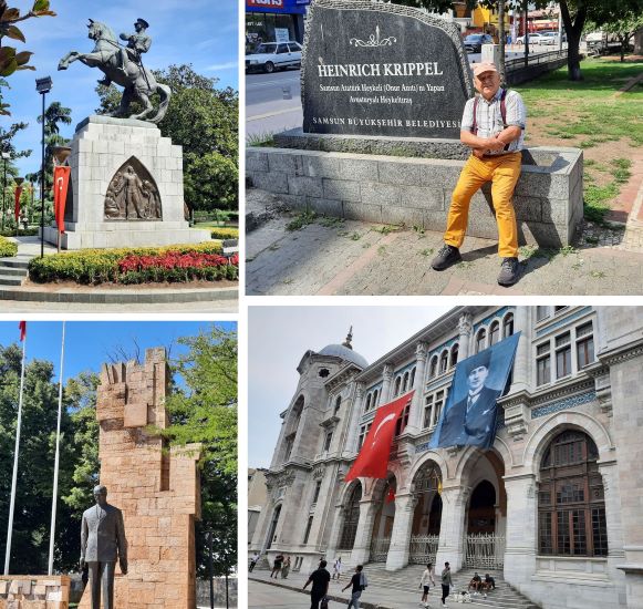 Najciekawsze spotkanie z Nim to Kemal Paşa na koniu. Budzący podziw i respekt pomnik podziwiam w centralnym parku miasta portowego Samsun. To miasto leży na północy kraju, nad Morzem Czarnym. Jego wody mają tu taki kolor, jaki opisał adekwatnie pisarz-arystokrata sycylijski Giuseppe Tomasi di Lampedusa w swym opowiadaniu „Le gite” – „Wycieczki”. Pisze on   o morzu przy swojej ukochanej sycylijskiej wyspie: „Vedo un mare azzurrissimo, quasi nero” – czyli: „Widzę morze niebieściutkie, niemal czarne”. Paralela oczywista z tutejszym Morzem Czarnym, po turecku „Karadeniz”.