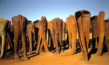 A tymczasem przestrzeń publiczna sztuki dalej obfituje w pomniki, wszechogarniający bezmiar kiczu. Ostatnio grupa lokalnych lizusów stawia pomnik z brązu byłego ministra ochrony środowiska i zasobów naturalnych. Rzeźbiarz Jerzy Kalina stawia posąg przed gmachem Muzeum Narodowego: na środku fontanny wypełnionej krwawą wodą – monumentalna figura Jana Pawła II trzymającego głaz. Przekaz nie jest jasny (zapożyczony od znanego rzeźbiarza); możliwe, że św. pamięci Papież rzuca symbolicznie ten kamień w Polską Kulturę i Sztukę, a barwa wody przypominająca krew może symbolizować krew niewinnych małoletnich, gwałconych przez rodzimy kler.