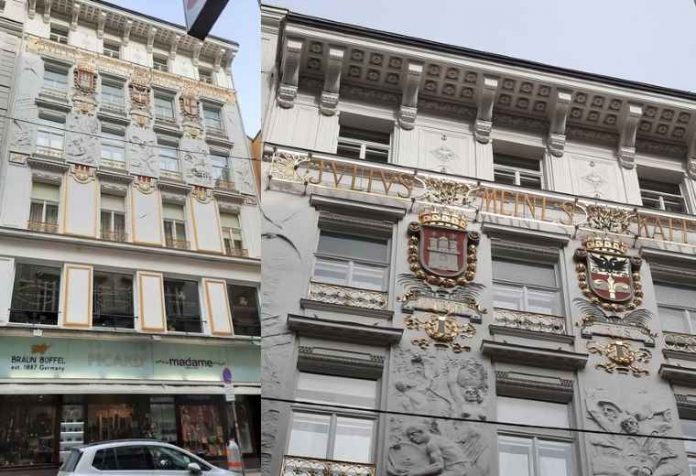 Okazuje się, iż stoję w ważnym historycznie miejscu dla handlu austriackiego. Oczywiście korzenie (dosłownie!) tego handlu nie tkwiły tu, lecz w krajach zamorskich, koloniach administrowanych przez europejskie imperia. Tu, w tym domu, urodziło się i rządziło imperium firmy „Julius MEINL“ (wymowa „majnl“) od 1862 roku. To były czasy! Cesarz Franciszek Józef, nadzieja narodu, był młody, jego żona Sissi przepiękna, on jeszcze nie przegrał wojny z Prusami, wierzył w rozwój olbrzymiej monarchii austro-węgierskiej, zajmującej niemal ćwierć Europy.