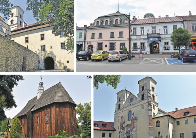 Opuszczamy słynne opactwo udając się w drogę powrotną. Zatrzymujemy się w Łagiewnikach, przed sanktuarium Bożego Miłosierdzia, nowoczesną świątynią, wzniesioną obok klasztoru Zgromadzenia Sióstr Matki Bożej Miłosierdzia, do którego należała św. Faustyna. Klasztor ten powstał w 1889 roku jako fundacja księcia Aleksandra Lubomirskiego. Popularność tego miejsca jest związana z kultem kanonizowanej w 1993 roku przez Jana Pawła II siostry Faustyny. Przebywała ona w łagiewnickim klasztorze od 1926 roku. Tu odbyła swój dwuletni nowicjat i złożyła swoje pierwsze śluby, a w 1933 roku wieczystą profesję. Również w Krakowie Faustyna Kowalska spędziła ostatnie lata swojego życia. Tu znajduje się cela, w której zmarła w 1938 roku. W Muzeum siostry Faustyny można również zobaczyć pamiątki po niej (m.in. pelerynę zakonną, kubeczek, lampkę nocną). Powstała również rekonstrukcja celi, którą zajmowała. Oprócz klasztoru, celem pielgrzymek jest piękna nowa bazylika poświęcona przez Jana Pawła II w 2002 roku. Znajdują się w niej relikwie siostry Faustyny oraz w ołtarzu głównym słynący łaskami obraz Pana Jezusa Miłosiernego, namalowany według wizji, którą miała święta 22 lutego 1931 roku. Jego autorem jest Adolf Hyła. Siostra Faustyna widziała wcześniejszą wersję obrazu pędzla wileńskiego artysty Eugeniusza Kazimierowskiego. Obraz Hyły powstał jako wotum za ocalenie artysty i jego rodziny podczas II wojny światowej. Nad jego tworzeniem czuwał krakowski spowiednik siostry Faustyny o. Józef Andrasz. To właśnie ten wizerunek zyskał popularność w Polsce i na całym świecie. Tabernakulum w ołtarzu głównym ma kształt ziemskiego globu, otoczonego krzewem o wygiętych, jakby miotanych wiatrem, gałęziach. Jest to nawiązanie do biblijnego krzewu gorejącego i wyzwań życia, które miotają współczesnym człowiekiem. Ostoją i schronieniem ma być w tym wszystkim Boże Miłosierdzie. Na poziomie dolnym bazyliki znajduje się pięć niezwykłych kaplic. W samym centrum ulokowana jest kaplica św. siostry Faustyny. Do tego wyjątkowego miejsca pielgrzymują katolicy z całego świata. Wśród nich znaleźli się również dwaj papieże, Jan Paweł II, który je poświęcił w roku 2002 i Benedykt XVI. Obok elipsoidalnej monumentalnej bazyliki znajduje się dominująca nad otoczeniem 77 metrowa wieża. Wznosi się na wysokość 310 m n.p.m. Liczy 315 schodów, z tarasem widokowym na poziomie 41,6 m. Widok na Kraków i okolicę jest naprawdę niesamowity. Przy dobrej widoczności można z łagiewnickiej wieży zobaczyć nawet Tatry! Ja nie mam takiego szczęścia, ale i tak widok jest niezapomniany. Koniec zwiedzania, bo musimy odebrać prawnuki ze żłobka. Idziemy z nimi na spacer na pobliski plac zabaw. Wkrótce przyjeżdża z pracy Kasia. Wieczorem pomagamy jej w opiece nad dziećmi, które wymagają ciągłego nadzoru. Następnego dnia po śniadaniu planujemy powrót do domu, ale życie tworzy inny scenariusz. Basia w nocy zagorączkowała i powinna zostać w domu. Jej mama musi być w pracy, a tata jest na rajdzie motocyklowym. Pradziadkowie przejmują więc obowiązki niani. W tej sytuacji z Krakowa możemy wyjechać dopiero koło południa. Jedziemy na Rzeszów i w rejonie Brzeska skręcamy w lewo na Koszyce. Przekraczamy po chwili Wisłę i dojeżdżamy do celu. Zatrzymujemy się przed dawną synagogą, gdzie obecnie mieści się Muzeum Ziemi Koszyckiej. Zostało ono założone przez polonijnego biznesmena z Chicago Stanisława Boducha w roku 2006, a od roku 2007 opiekę nad obiektem sprawuje samorząd miasta. Muzeum jest czynne, więc zaglądamy do środka. Placówka ma trzy działy ze stałymi ekspozycjami: archeologiczną, historyczną i etnograficzną. Dział archeologiczny reprezentują zgromadzone eksponaty pochodzące z wykopalisk prowadzonych w miejscowościach położonych w pobliżu Koszyc – m.in. z Sokołowic, z lat 1850 p.n.e. – 1300 p.n.e. (kultura trzciniecka) i Witowa-Dalanowa nad Wisłą, gdzie znajdował się duży gród obronny. Wydobyto tam kilkaset przedmiotów pochodzących z epoki brązu i wczesnego żelaza – lata 1300 p.n.e. – 400 p.n.e. (kultura łużycka). Dział historyczny zawiera zbiór dokumentów źródłowych, w tym akty lokacyjne miasta Koszyce, dokumenty cechowe. Na dział etnograficzny składają się zbiory regionalne z XIX i XX wieku, w tym zrekonstruowana izba mieszkalna z tego okresu. W sali na parterze eksponowana jest wystawa „Koszyce w starej fotografii”.
