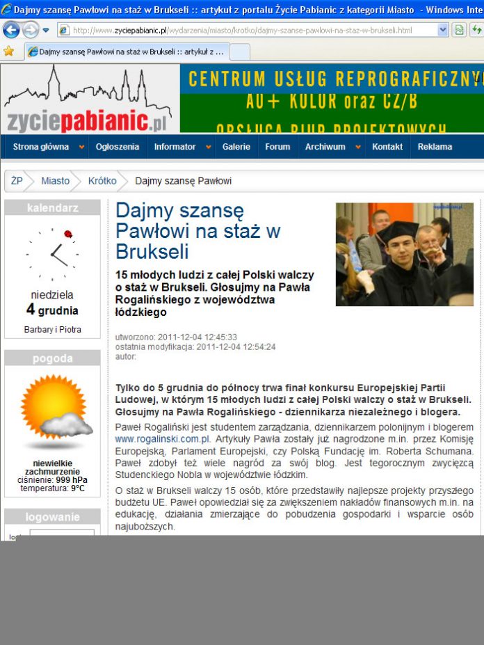 ŻyciePabianic.pl: "Dajmy Pawłowi szansę na staż w Brukseli"